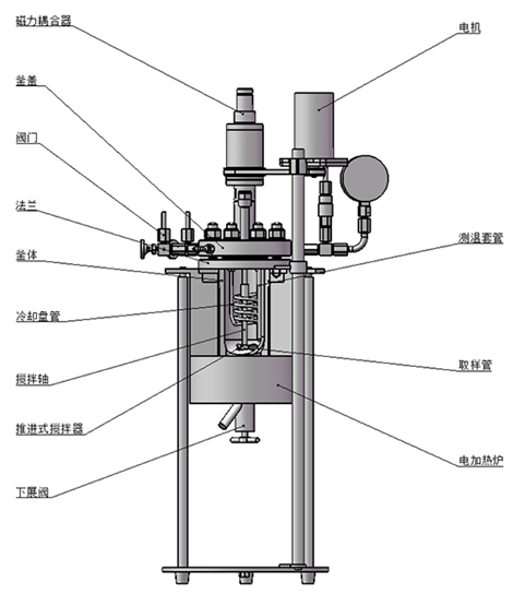 該結構為環形磁力密封裝置,依靠兩組強力磁鋼異極相吸的原理通過磁場穿透密封罩體來實現力矩的無接觸式傳遞,由于電機經過皮帶二級減速,故而其攪拌特點是大轉矩低轉速(≤750r/min),適合攪拌中高粘度(cp≥5000mpa.s)或固體顆粒含量較多的反應物料介質體系。